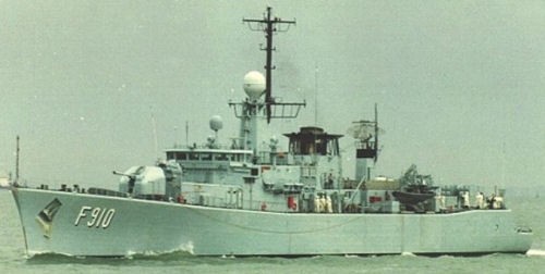 F910 Wielingen to pierwsza z czterech fregat, które od drugiej połowy lat 1970. zaczęły wchodzić do służby w marynarce wojennej Belgii. Ich uzbrojenie to jedno działo automatyczne Creusot Lorie kalibru 100 mm, 1 wyrzutnia pocisków przeciwlotniczych Sea Sparrow (łącznie 8 pocisków), 1 wyrzutnia pocisków morskich MM-38 Exocet (4 pociski), 1 wyrzutnia bomb głębinowych i dwie wyrzutnie torped ECAN I5 Mod. 4 (10 torped). Okręty spełniają standardy NATO / Zdjęcie: MW Belgii