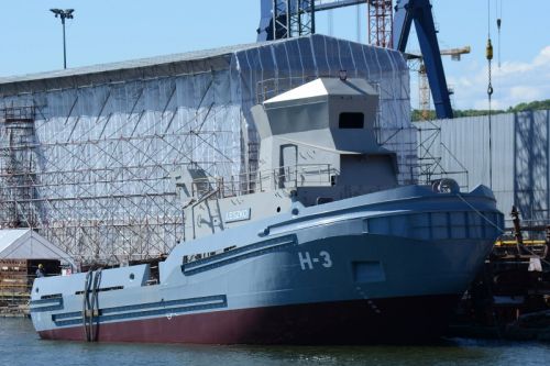 Wodowanie H-3 zostało przełożono na dziś (3 czerwca). Procedura rozpoczęła się po godz. 7:00. Kilka minut przed 9:00 holownik został uniesiony z nabrzeża i przed 9:10 po raz pierwszy dotknął powierzchni wody. Po kolejnym kwadransie jednostka znalazła się na wodzie, by po godz. 10:00 przycumować do stoczniowego nabrzeża.