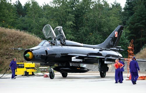 Czas płynie nieubłaganie. Samoloty myśliwsko-bombowe Su-22 - niegdyś szczyt nowoczesności i duma naszego lotnictwa wojskowego - dziś są już ostatnimi egzemplarzami tego typu, latającymi w Europie, i wkrótce całkowicie znikną z polskiego nieba. Liczba sprawnych egzemplarzy szybko się zmniejsza, a ostatnie Su zakończyć mają swoją służbę już za niecałe trzy lata, co - wobec braku odpowiedniego następcy - postawi nasze lotnictwo wojskowe w bardzo trudnej sytuacji sprzętowej.