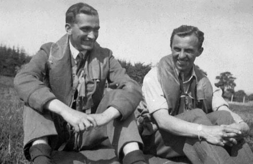 Na starym zdjęciu widać dwóch roześmianych dwudziestoparolatków siedzących na trawie. Można by je uznać za zrobione na jakiejś majówce, gdyby obaj nie mieli na sobie kamizelek ratunkowych, świadczących jednoznacznie, że to lotnicy w gotowości do startu.