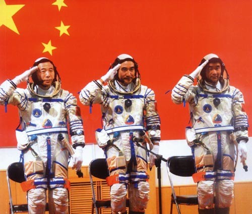 Załoga Shenzhou-7, w środku Zhai Zhigang / Zdjęcie: Xinhua