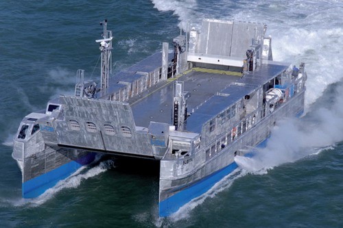 Francuski katamaran desantowy EDA-R uczestniczył w ubiegłym tygodniu w ćwiczeniach z amerykańskim okrętem desantowym USS Wasp, wpływając m.in. do jego doku.