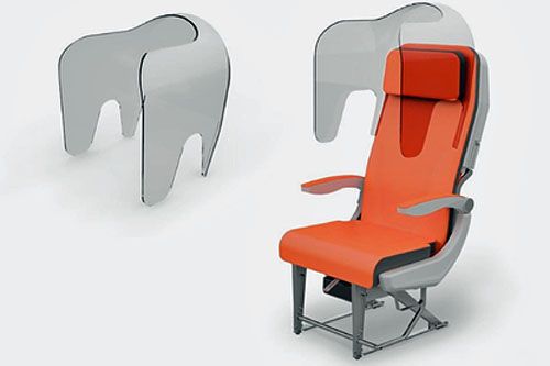 Wcześniej, jeszcze w kwietniu, swój pomysł na podróże lotnicze w czasach epidemii przedstawiła Aviointeriors (znana z tego, że proponowała niedawno miejsca stojące w samolotach). Miały to być przestrzenne osłony zakładane na fotele. Dzięki nim nie trzeba by redukować liczby miejsc na pokładzie. Osłony byłyby łatwe do demontażu i czyszczenia dla zapewnienia odpowiedniego poziomu higieny.