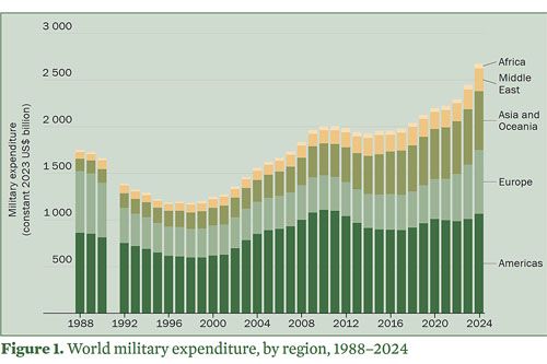 Sztokholmski Międzynarodowy Instytut Badań nad Pokojem (SIPRI) ogłosił, że światowe wydatki zbrojeniowe w 2024 wyniosły 2,718 bln USD. W porównaniu z poprzednim rokiem wzrosły o 9,4%. To najwyższy roczny wzrost od zakończenia zimnej wojny (Wzrost wydatków obronnych w 2020, 2021-04-26).