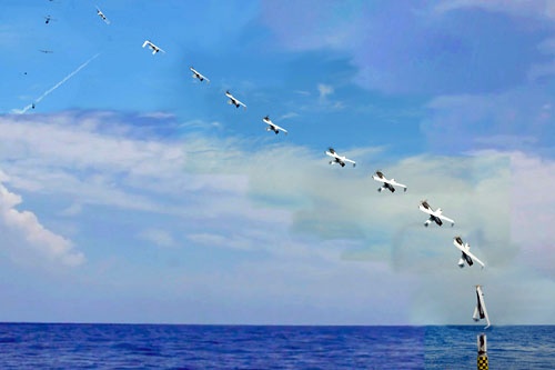 US Naval Research Laboratory (NRL) (Rekord wodorowego bsl, 2013-05-12; System bezzałogowy wynoszony przez balon, 2012-01-01), w ramach programu SwampWorks wspieranego finansowo przez Office of Naval Research (ONR) i Department of Defense Rapid Reaction Technology Office (DoD/RRTO), przeprowadziło test startu latającego bezzałogowca z zanurzonego okrętu podwodnego. Program badawczo-rozwojowy trwał blisko 6 lat. Jego celem jest uzyskanie takiego systemu rozpoznania dla amerykańskiej floty podwodnej.