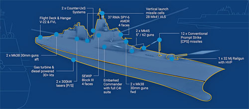 Po wystąpieniu Trumpa dodatkowe szczegóły o BBG(X) podała US Navy. Według niej pancernik klasy Trump będzie pierwszym w historii okrętem rakietowym, zdolnym do przenoszenia zarówno pocisków jądrowych, jak i hipersonicznych. Ma operować autonomicznie, dowodząc własną formacją z platformami załogowymi i bezzałogowymi, lub jako część lotniskowcowej grupy uderzeniowej.