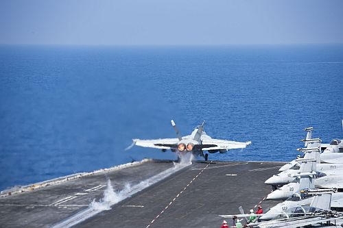 Amerykański atomowy lotniskowiec USS George H.W. Bush i towarzyszące mu okręty wyszły na Morze Śródziemne, skąd kontynuowane są naloty na pozycje islamistów.